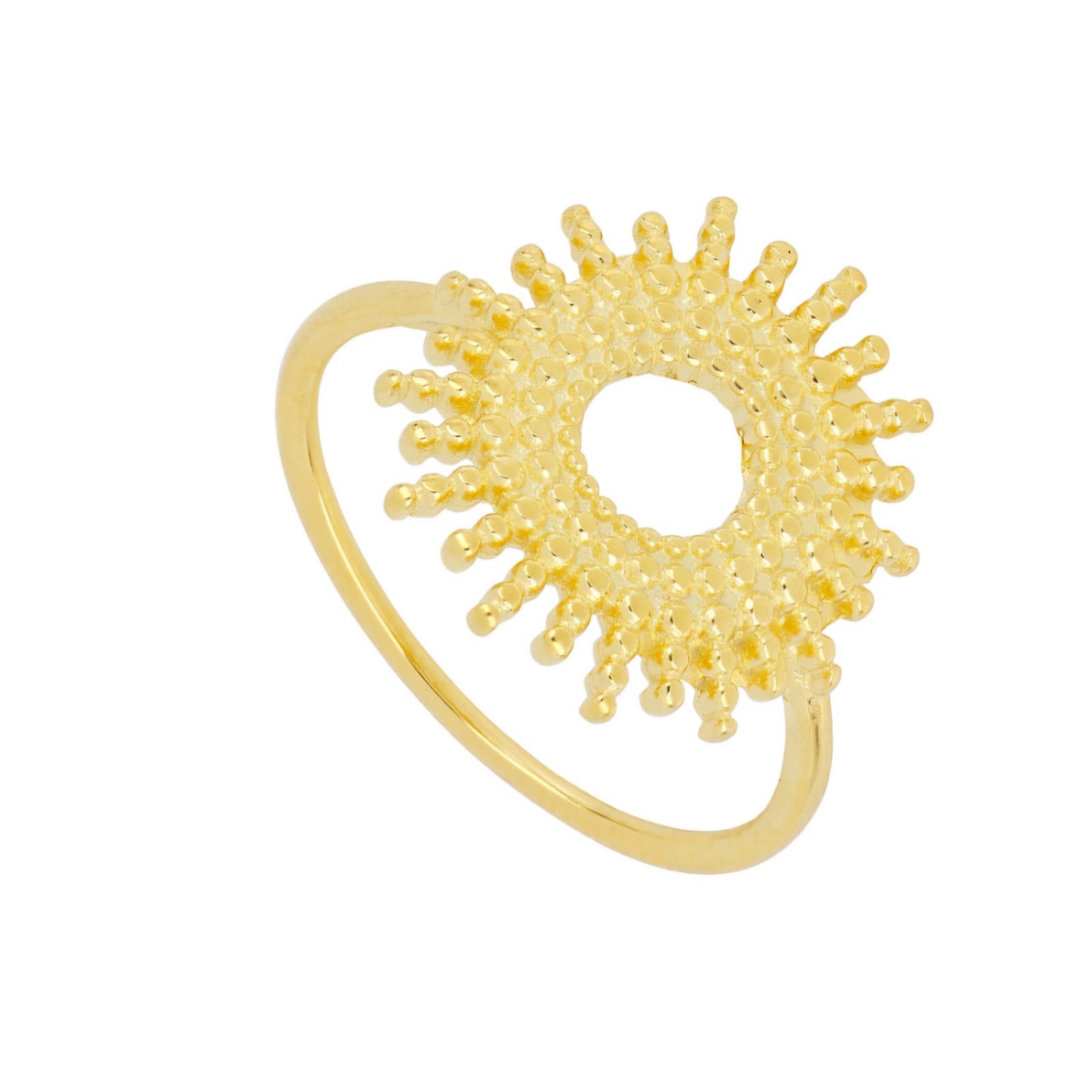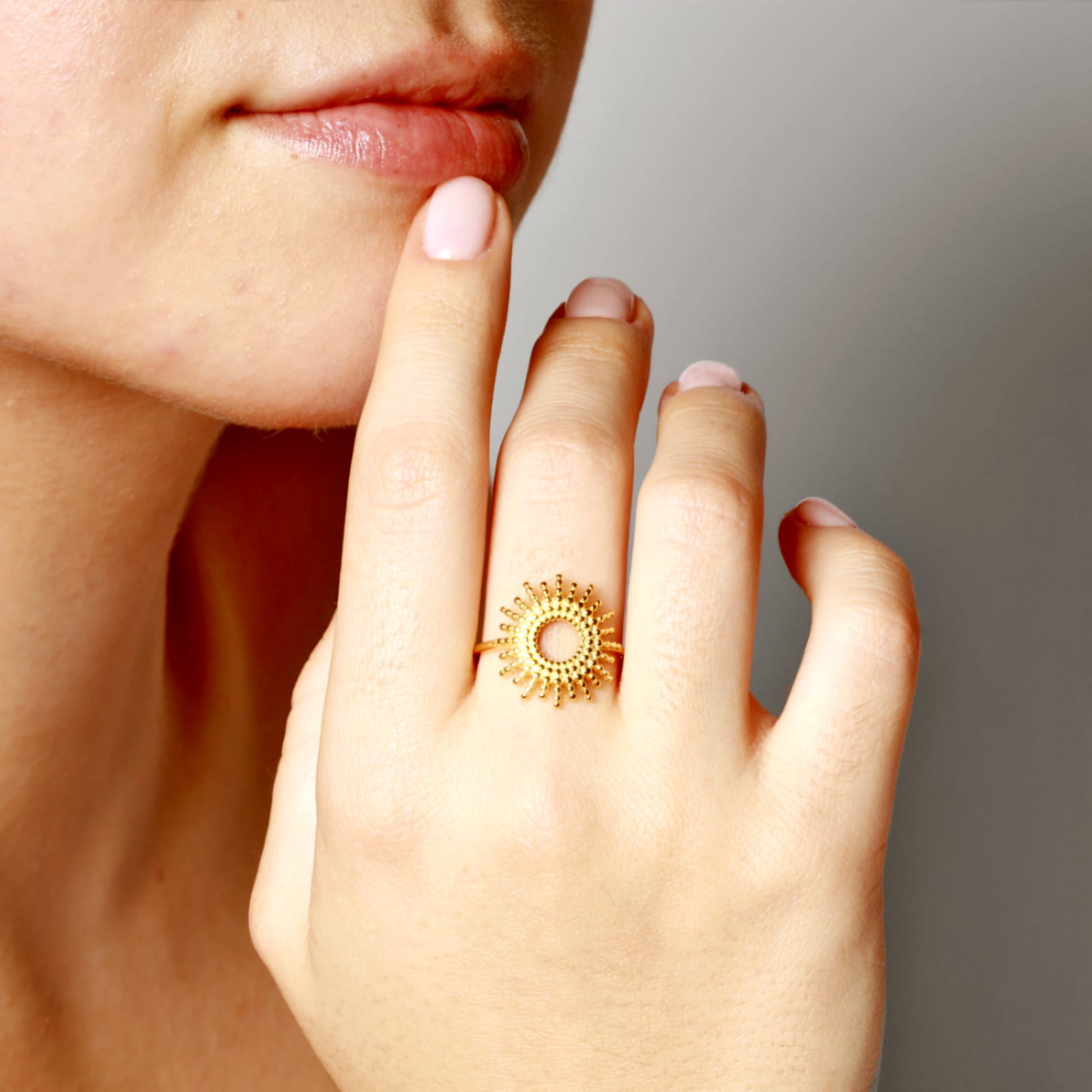 The Solar Radiance Ring – designed to capture the sunโs brilliance, featuring delicate rays that fan out like a miniature sunburst around your finger.