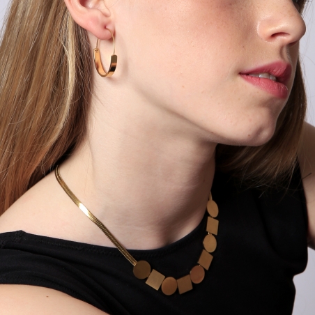 We present our hoop earrings made of gold plated stainless steel, designed with waterproof and hypoallergenic properties. These earrings offer both elegance and comfort, ideal for everyday wear. Upgrade your style with this exceptional accessory.