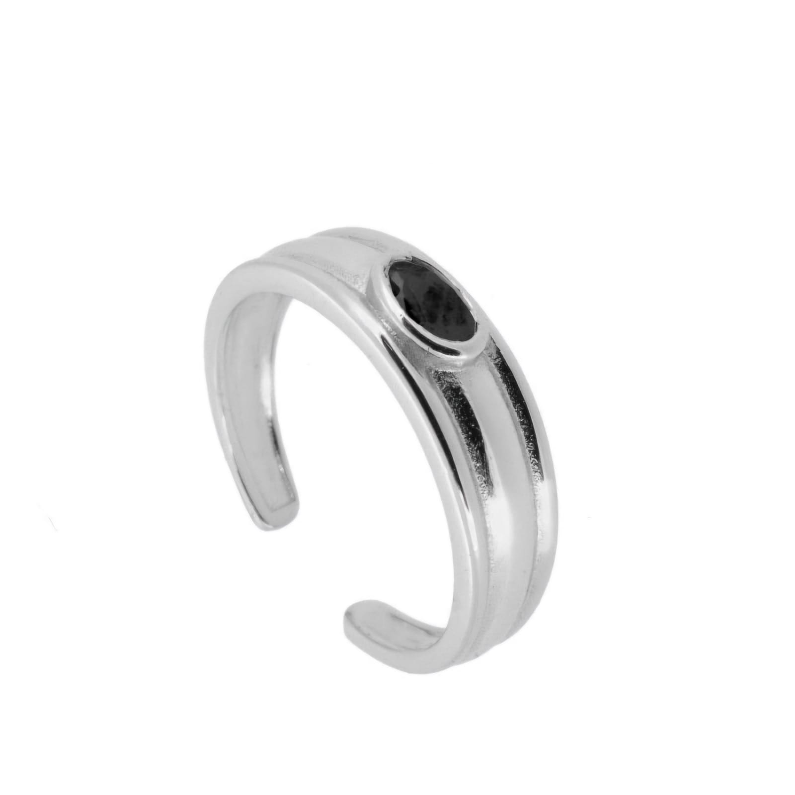 A jet-black stone set in high-shine silver creates a sleek, minimalist silhouette.