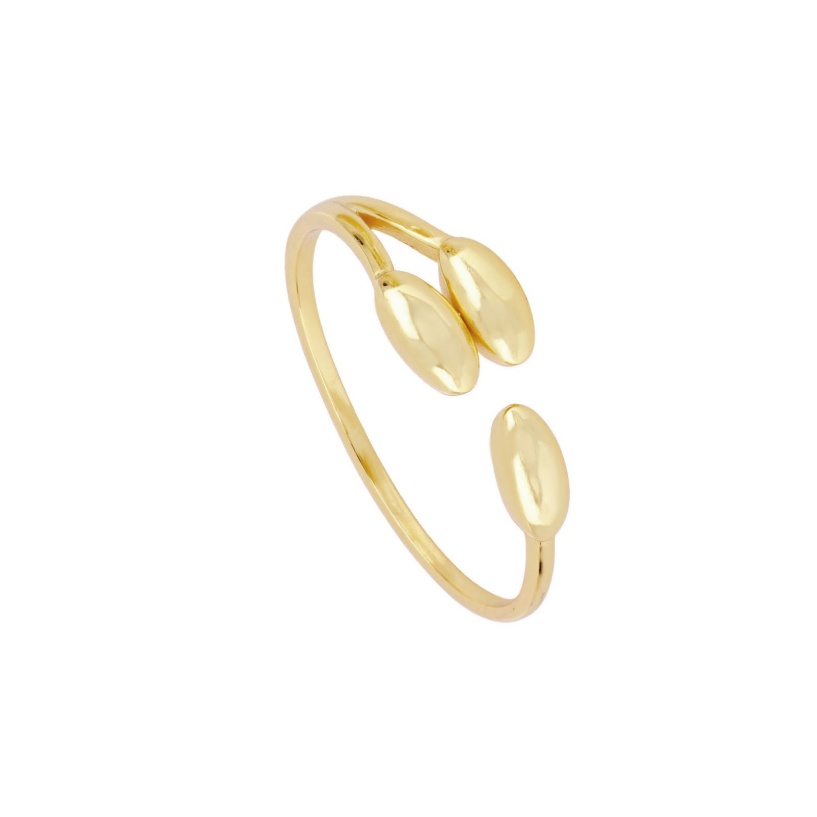 A sleek gold band, accented with three radiant golden dots โ like sun drops resting on your skin. Adjustable to hug your smallest finger, it brings effortless polish and subtle strength.