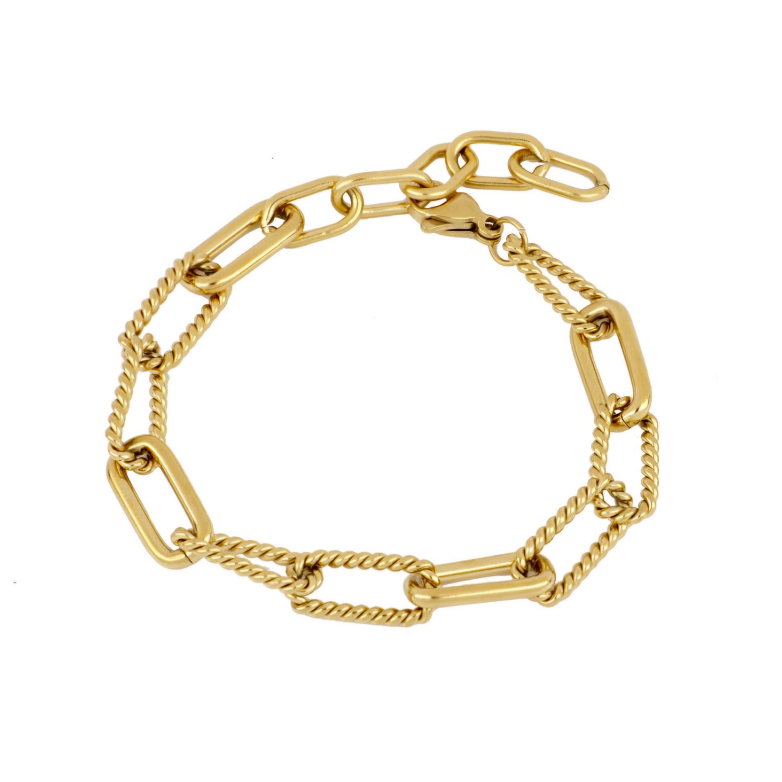 Make a bold statement with this modern chunky bracelet, where textured surfaces meet sleek, contemporary design.