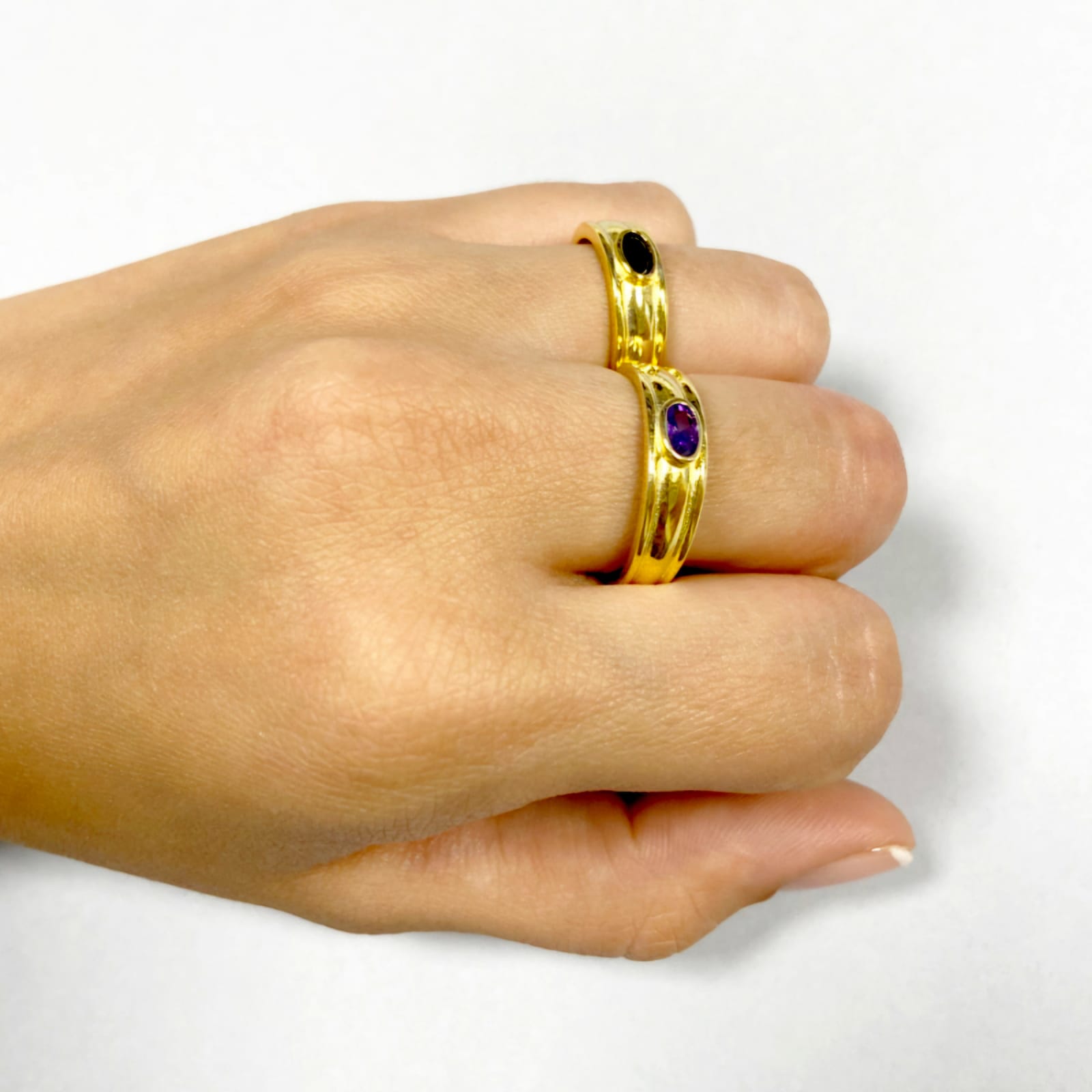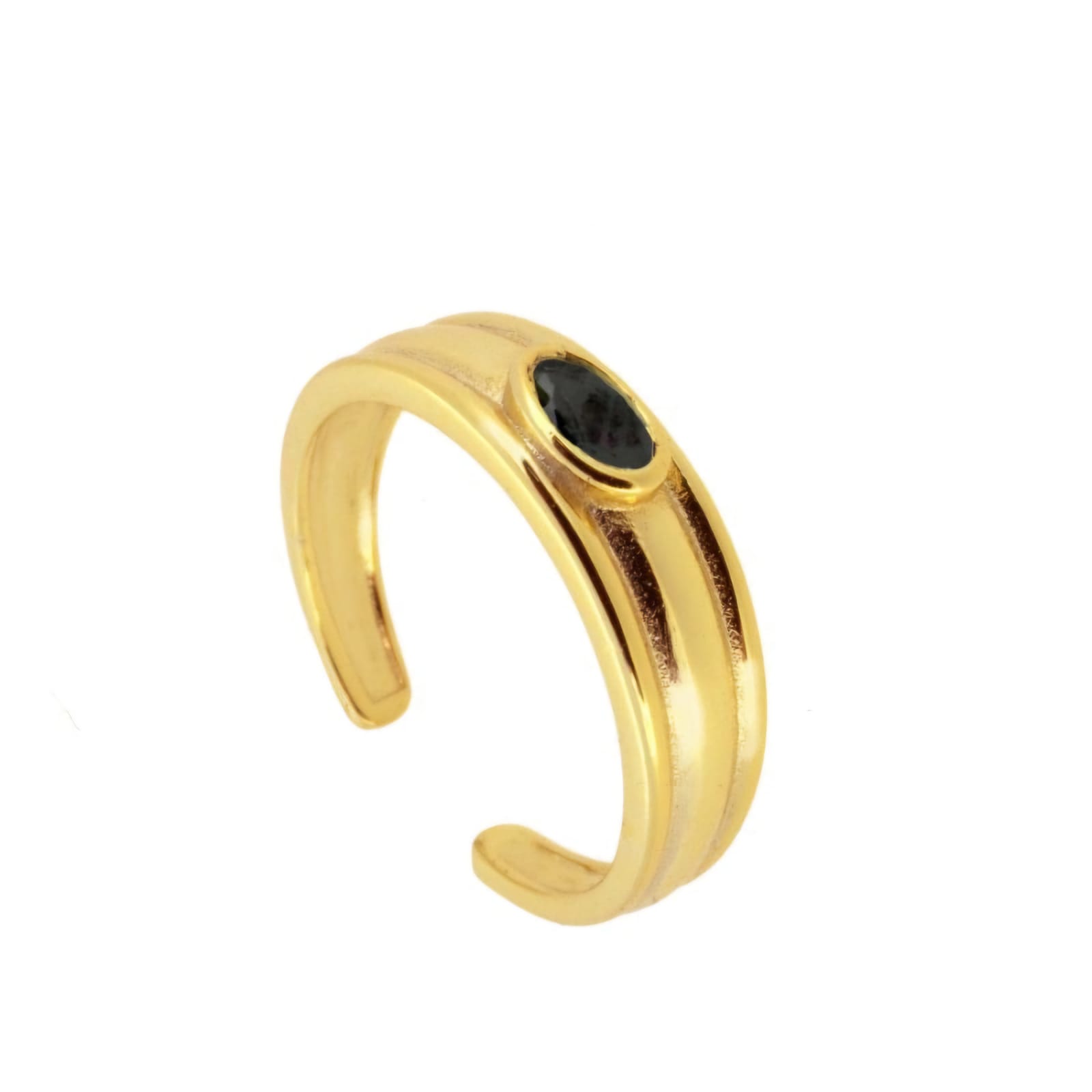A warm gold band accented with a sleek black stone, creating a minimalist and striking silhouette.
